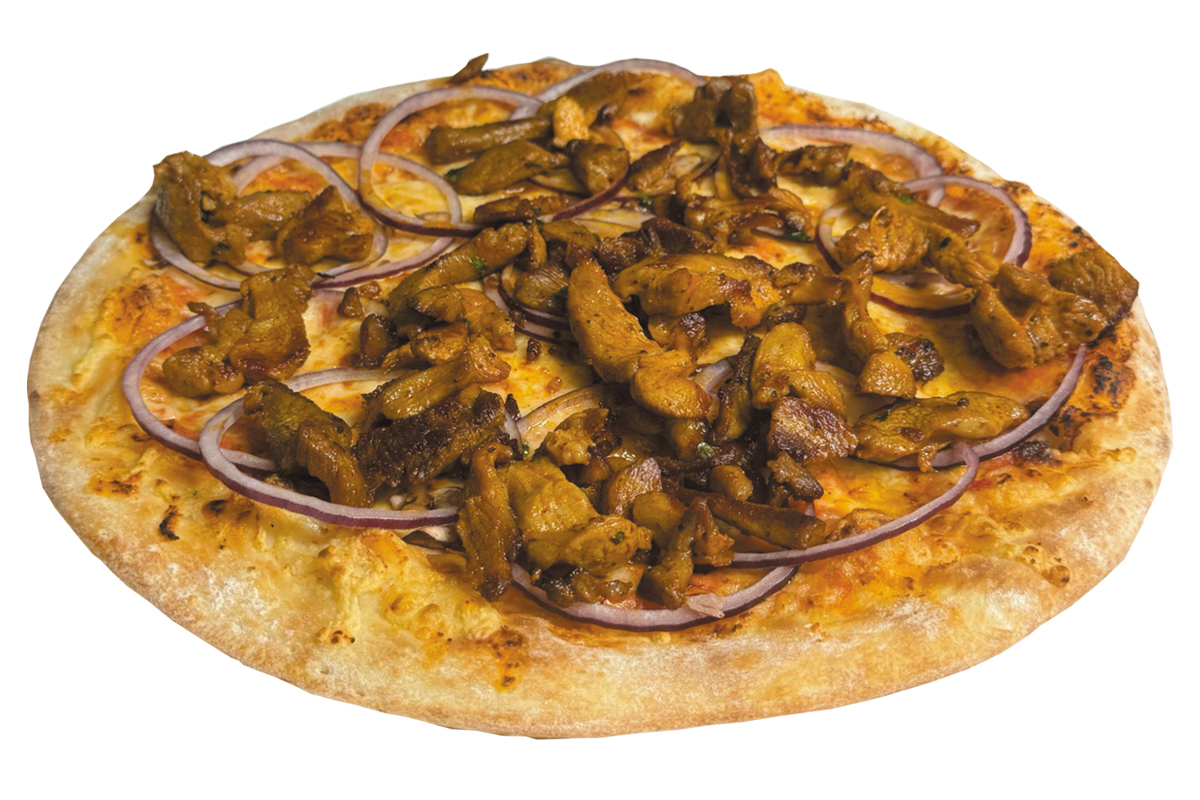 mit Tomatensauce, Käse, Schweinegeschnetzeltem Gyros-Art, Zwiebeln und Oregano